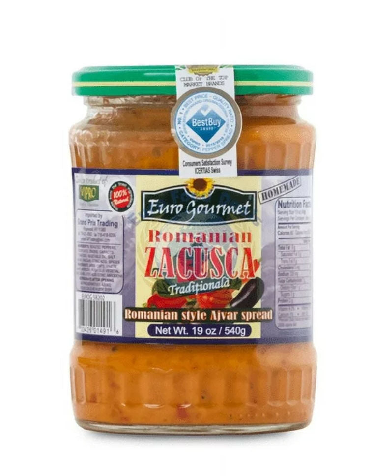 Traditional Romanian vegetable spread made with roasted eggplants, roasted peppers, onions and tomatoes. Enjoy it as a sandwich spread, as a dip or in cooking . A healthy delicacy .Product of Romania